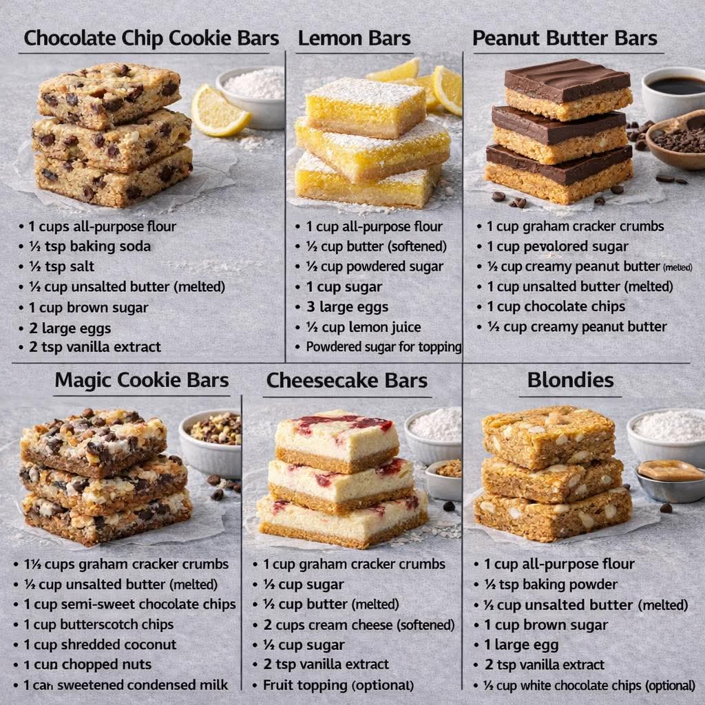 Easy, crowd-pleasing treats made in one pan — perfect for sharing, parties, or sweet cravings. 🍪 1. Chocolate Chip Cookie Bars Ingredients Instructions 🍋 2. Lemon Bars Ingredients Instructions 🥜 3. Peanut Butter Bars (No-Bake) Ingredients Instructions ✨ 4. Magic Cookie Bars Ingredients Instructions 🍰 5. Cheesecake Bars Ingredients Crust Filling Instructions 🤍 6. Blondies … Read more