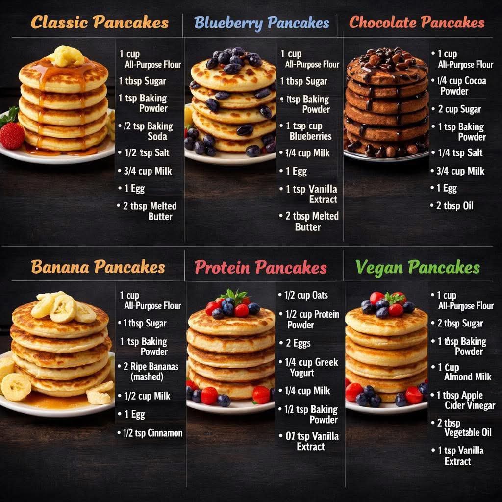 Six easy pancake variations — fluffy, flavorful, and perfect for breakfast or brunch.