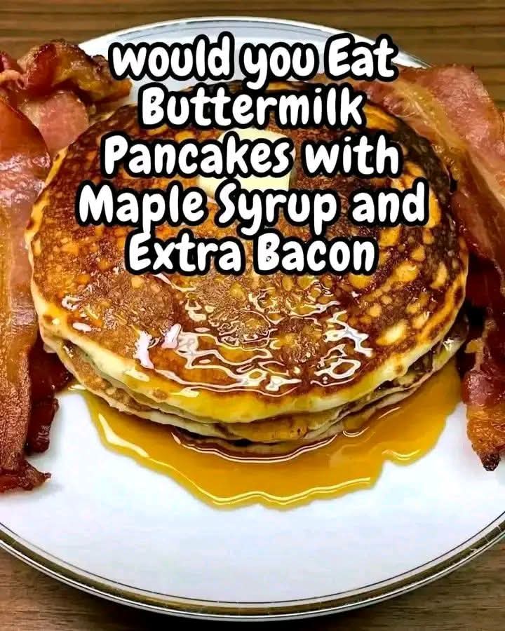 These classic buttermilk pancakes are soft, fluffy, and lightly sweet, making the perfect base for crispy bacon and warm maple syrup. The contrast between sweet and savory turns a simple breakfast into a comforting, diner-style favorite that never disappoints.