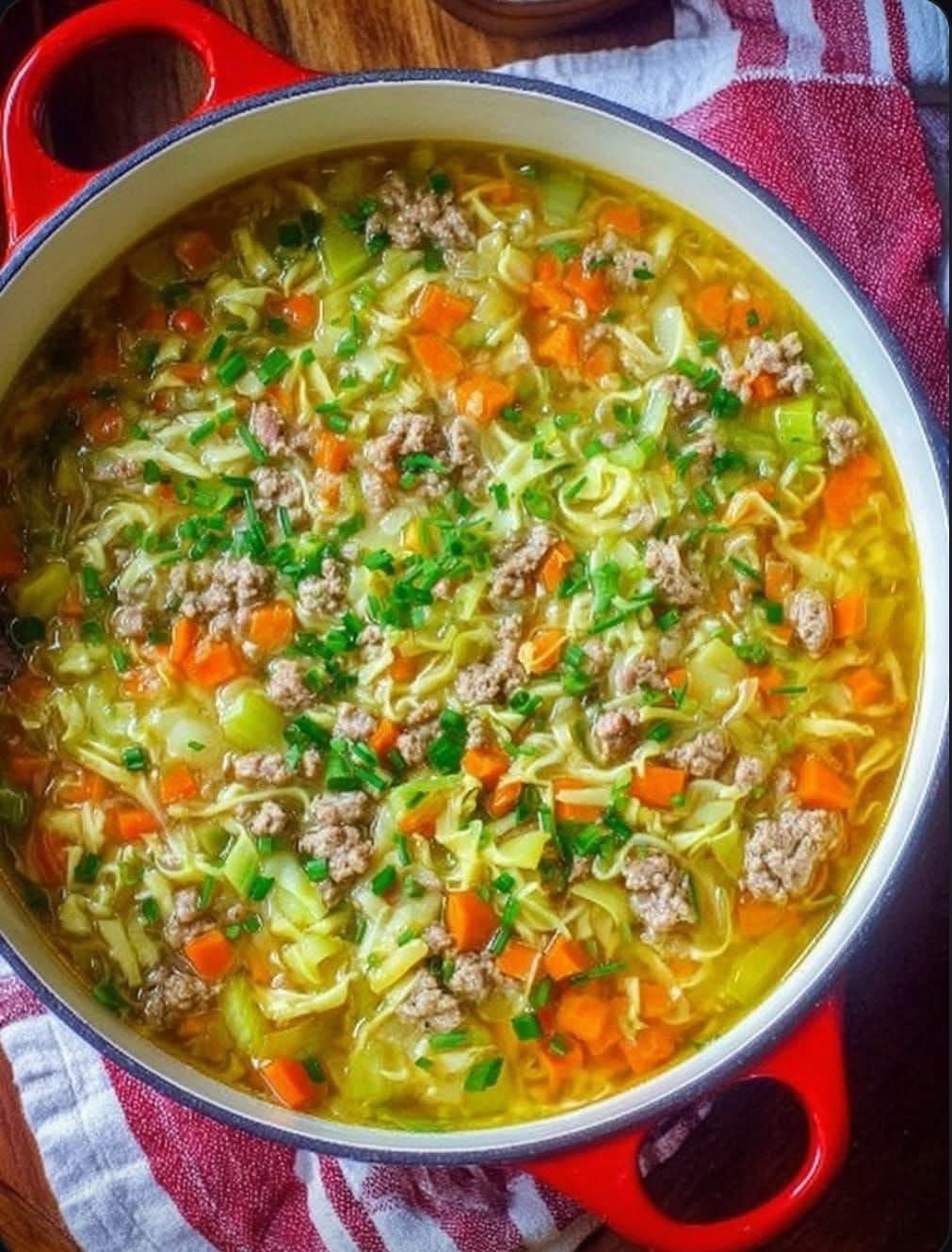 Egg Roll Soup (often called “Egg Roll in a Bowl”) became popular during the low-carb and keto food trend, offering the same flavors without the fried wrapper. Aunt Betty’s version brings a homestyle twist — rich broth, extra cabbage, and comforting warmth.