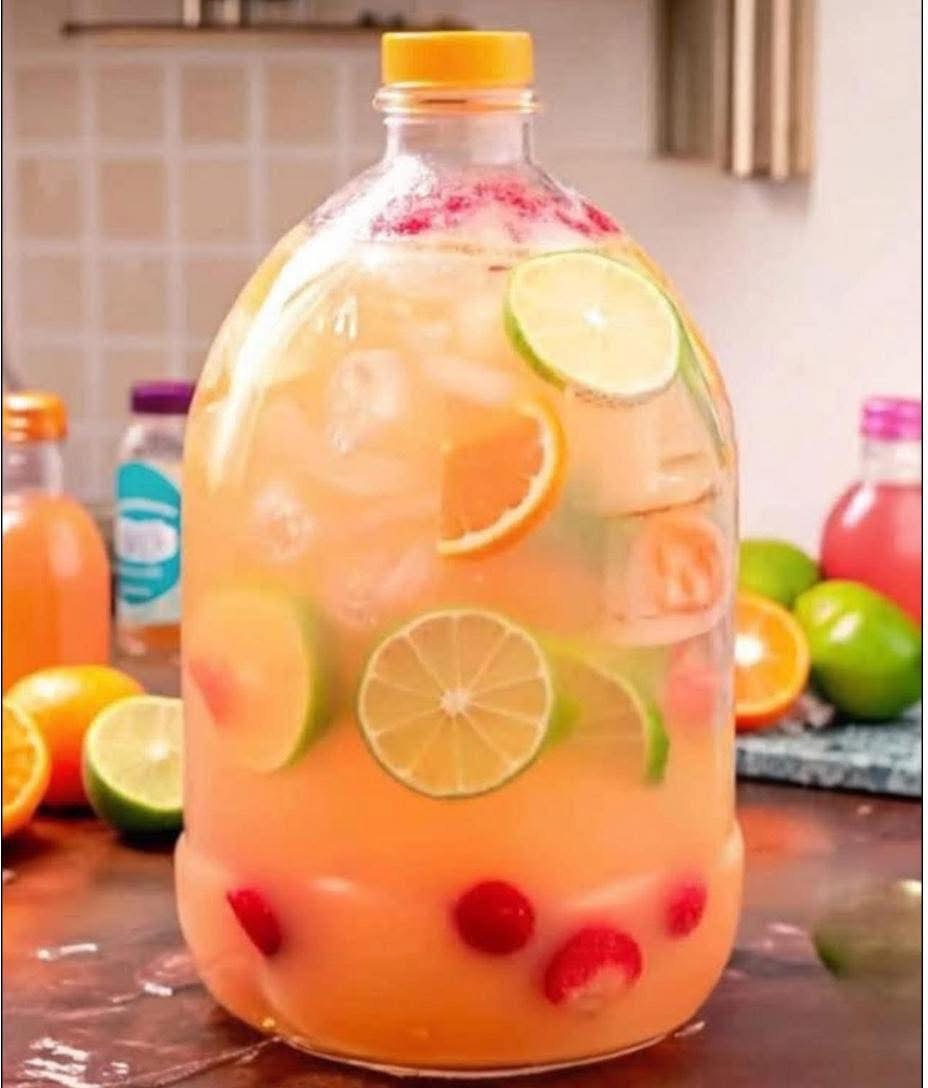 Add sliced fruits to a clean gallon container. Pour in all liquid ingredients. Stir to combine and chill well. Serve over ice and let the party pour.