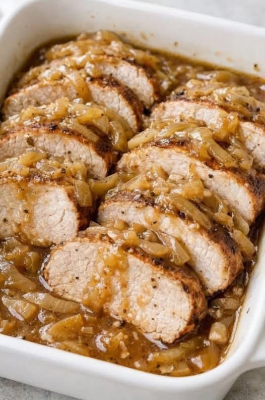 There are pork roasts that require brining and herb crusts and constant basting, and then there’s this Onion Soup Pork Loin—the one where you season a pork loin with dry onion soup mix, pour cream of mushroom soup over it, cover it tightly with foil, and slide it in the oven for three hours while it transforms itself into impossibly tender, deeply savory perfection swimming in rich gravy. No searing to seal in juices. No multiple steps. No worrying about whether you’re doing it right. Just season, cover, bake, and come back to meat so tender you can cut it with the side of your fork.