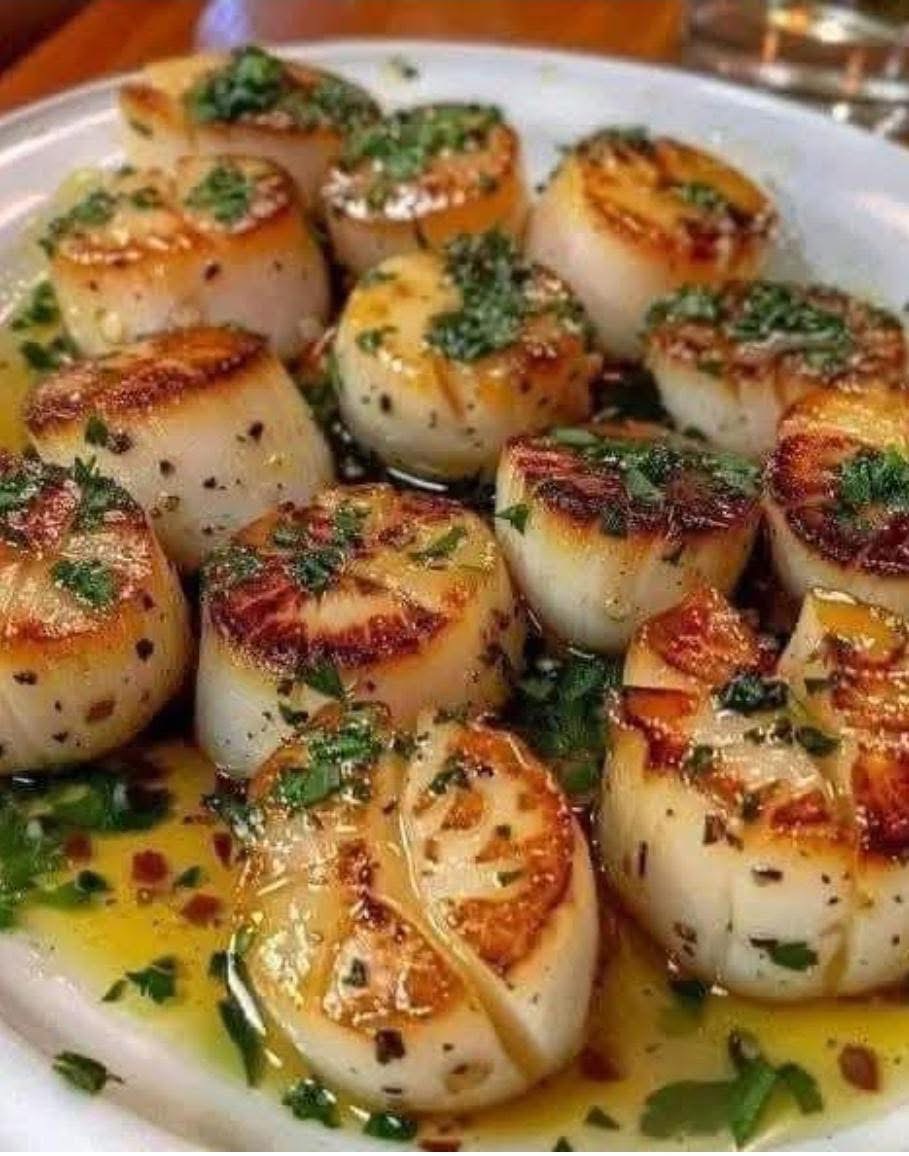 Pour the garlic butter mixture over the scallops, ensuring they are well-coated.