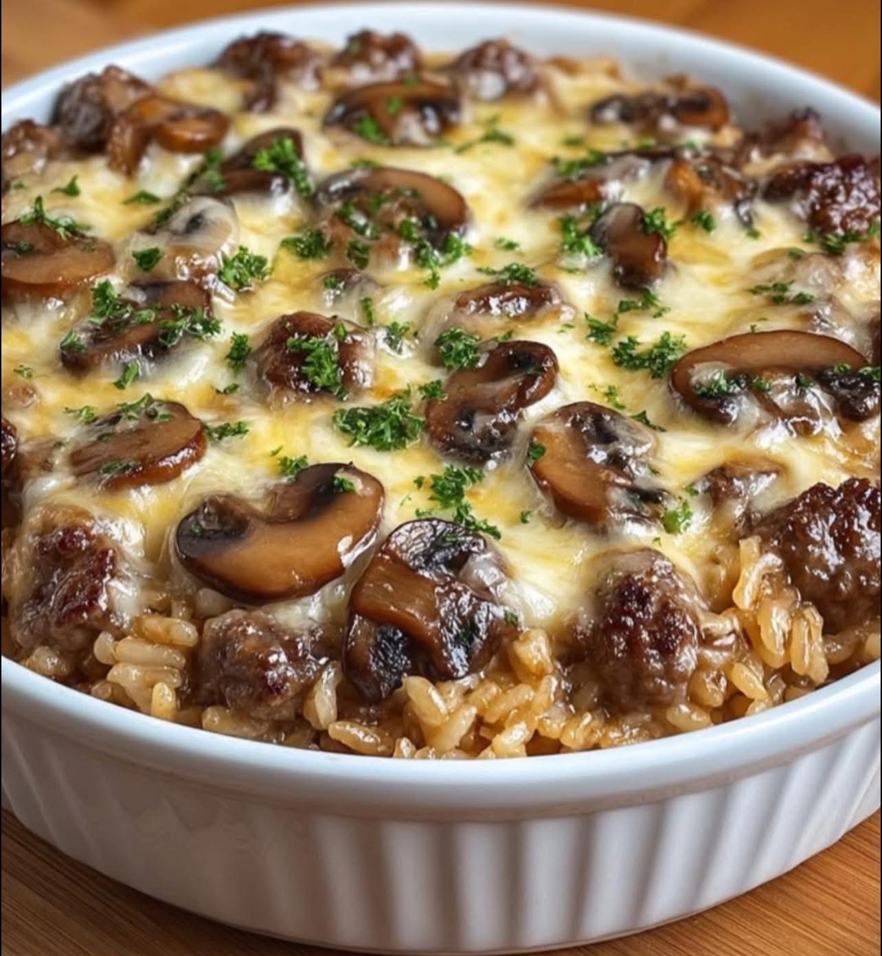 Creamy Beef & Mushroom Rice Bake