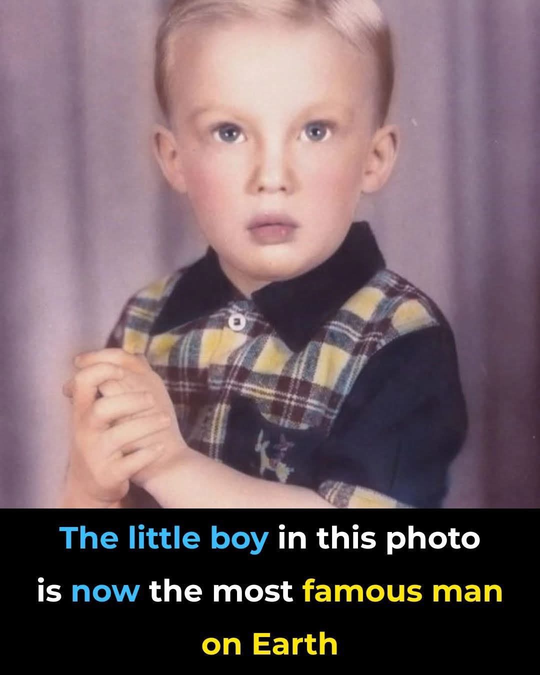 A photograph surfaced online recently—not as breaking news, not as political commentary, but as a quiet puzzle. It showed a young boy, perhaps six or seven years old, standing before a simple beige backdrop. He wore a black button-up shirt distinguished by playful yellow tartan panels across the chest. His fair hair was neatly combed, his blue eyes locked directly with the camera lens, and his small hands were clasped gently in front of him—a pose suggesting both formality and a child’s earnest attempt to behave for the photographer. The image bore the soft grain and muted tones of mid-20th century photography, a relic from an era when cameras were reserved for special occasions and smartphones existed only in science fiction.What made this unassuming portrait remarkable was not its artistic merit, but the question it posed to viewers: Do you recognize this child?As the image circulated across Facebook, Twitter, and Instagram, it became a digital parlor game. Users paused their scrolls, studied the boy’s features—the determined set of his jaw, the directness of his gaze, the faint hint of a smirk playing at the corners of his mouth—and slowly, recognition dawned. Comments began to accumulate beneath the post: