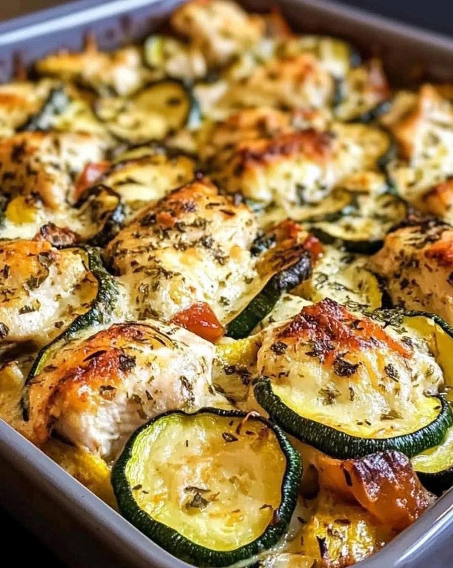 Serve: Garnish with fresh parsley and serve hot. Enjoy this delicious Mediterranean chicken zucchini bake!