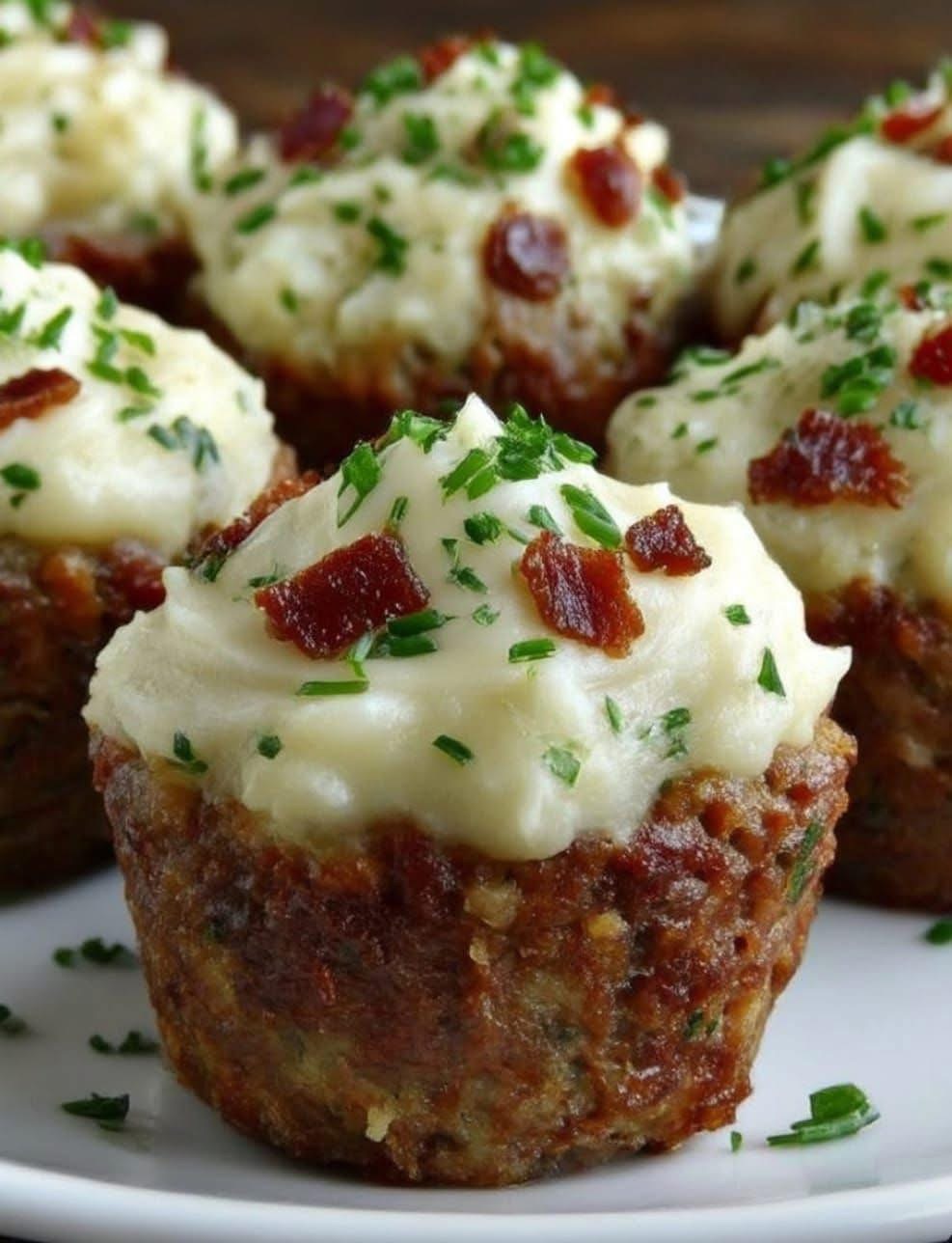 A fun, comfort-food twist on classic meatloaf—individual “muffins” topped with creamy mashed potatoes like frosting. Perfect for family dinners or meal prep! Ingredients (Makes 10–12 muffins)