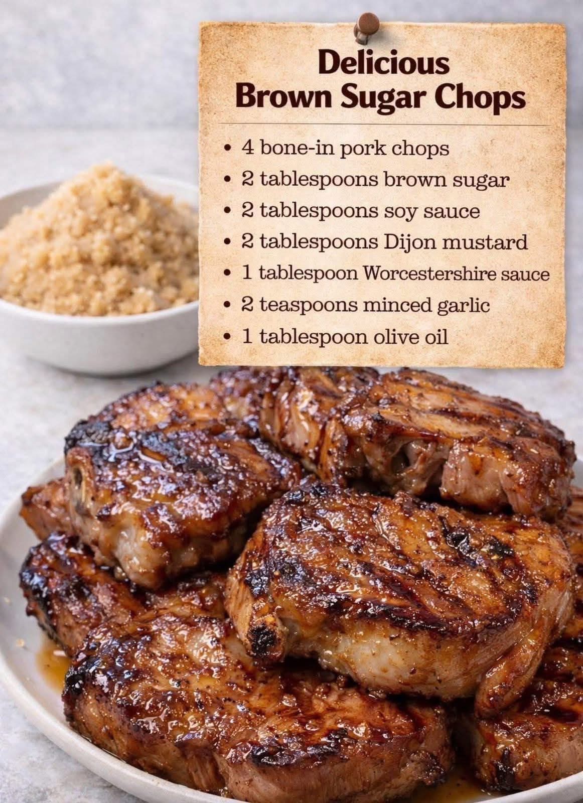 Brown Sugar Pork Chops are a quick, easy, and delicious way to elevate your weeknight dinner. The sweet and savory glaze caramelizes beautifully on tender, juicy bone-in pork chops, creating a dish that is both comforting and impressive. Perfect for busy evenings, family dinners, or any time you need a little something special.