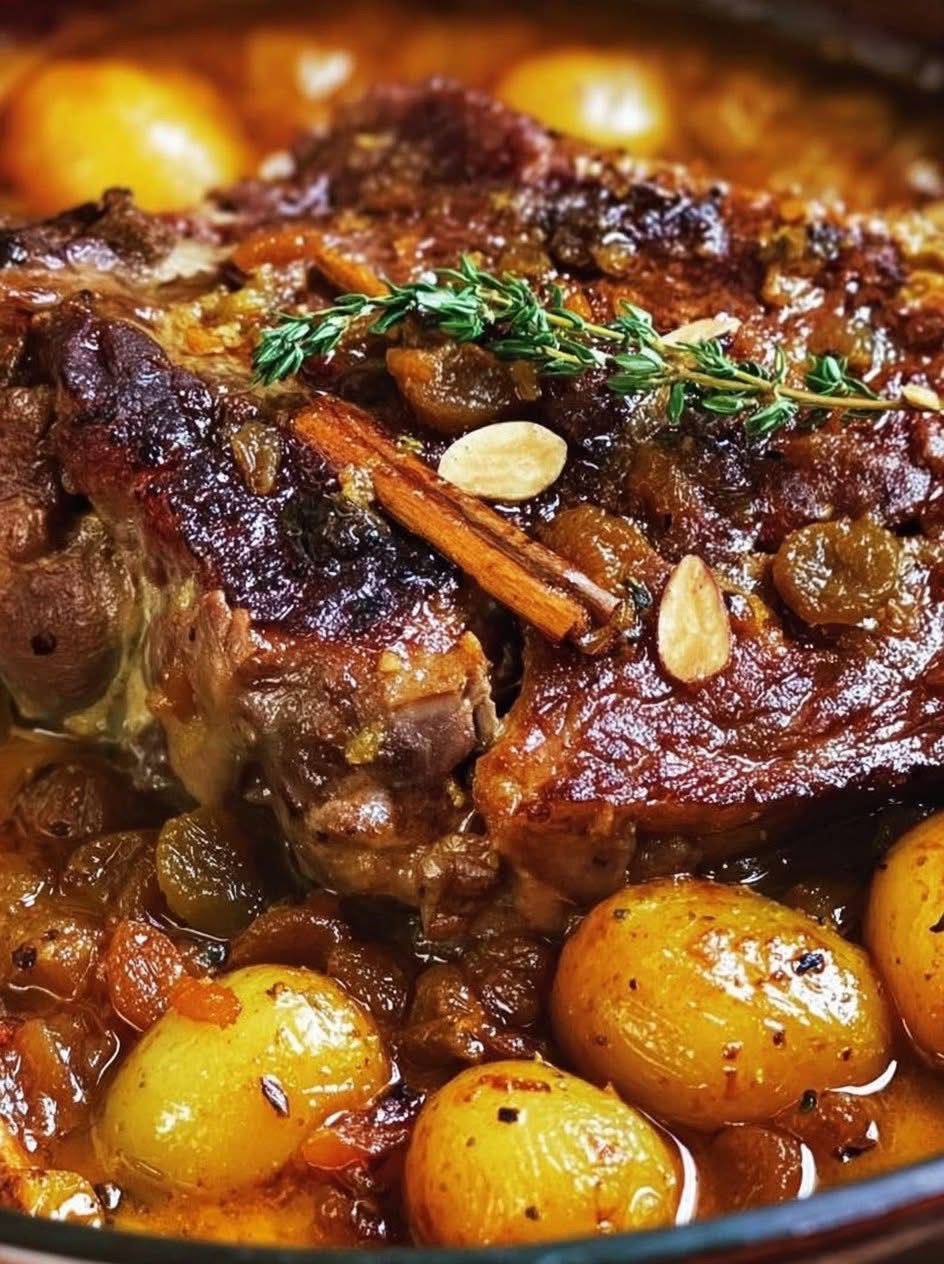 Moroccan-Style Sweet & Savory Lamb Tagine with Apricots, Toasted Almonds & Fragrant Cinnamon